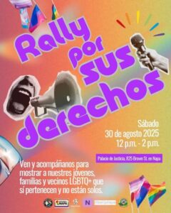 Venga a escuchar a líderes y aliados LGBTQ+, a escuchar las historias de sus vecinos y a aprender cómo defender a la juventud y a las familias LGBTQ+ de Napa. Juntos podemos construir un condado donde cada persona queer, trans y LGBTQ+ (jóvenes, adultos y personas mayores) pueda vivir, aprender y prosperar sin miedo.